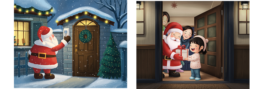 A.玄関前に置いていただいたプレゼントをサンタの袋に入れてインターフォンを 押し訪問します。 玄関内でお子さまにプレゼントを渡します。 ご希望があれば当日までのご連絡の中で決めていきます。 サンタの滞在時間は5~10分程度です。 |